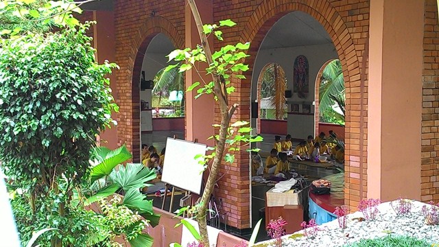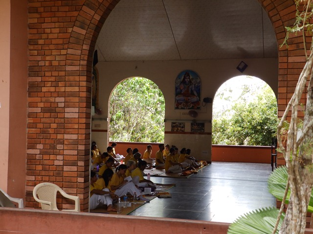 Ada yang sedang meditasi di suatu ruangan, ada yang yang beramai-ramai berada di dalam aula untuk belajar atau berlatih yoga dan ada juga yang secara berkelompok terlihat takjim mendengarkan penjelasan sang guru. Saya melihat ini penuh rasa iri, berandai-andai bisa jadi salah satu murid di sini seperti beberapa orang yang dari raut wajah mereka, saya pastikan mereka datang dari berbagai negara.