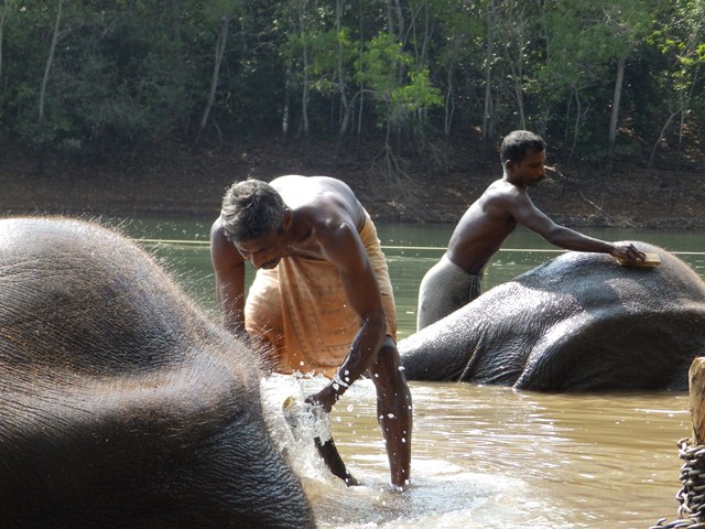 Menemani Gajah mandi di Kottur Elephant Rehabilitation Centre