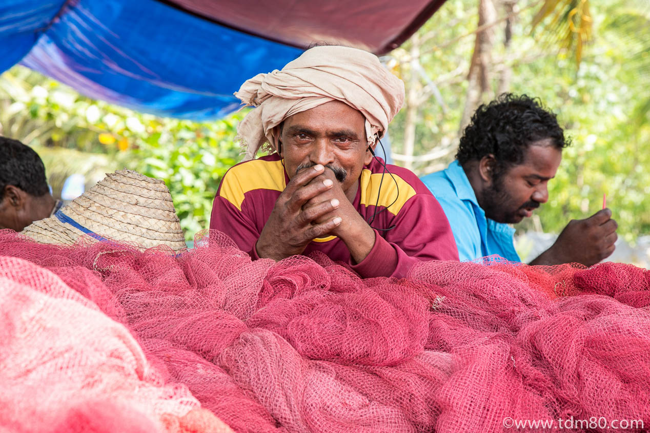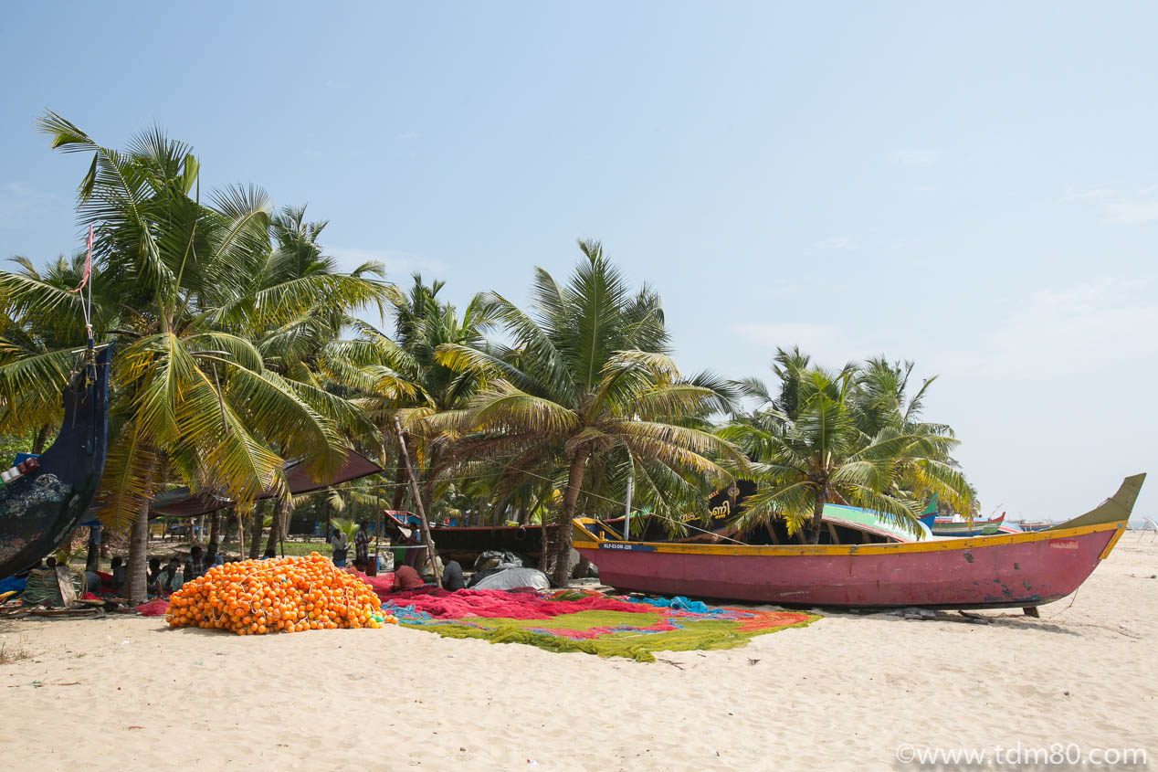 A few anecdotes……I still rememebr the day i got lost accidentally on purpose,a nd ended up meeting a Brahman I got along with really well. He was curious about my travels and I about his way of life in the temple. I stayed with him for over an hour, he introduced me to all the people as he explained how the this place of worship worked. They were preparing the celebration of the festival for that evening, and whilst my colleagues were kayaking in the backwaters, I took the time to discover the natural rhythm of life here. A little priveledged moment, just how i like them… I also recall the time I spoke ot the fishermen on one of the Marari beaches, not far from the luxury hotel we had lunched in. They were fixing up their nets, in the shade of the noats and coconut trees. I was only with them for 20 mins or I’d have missed the bus, but I’d have easily spent the rest of the day in their company…