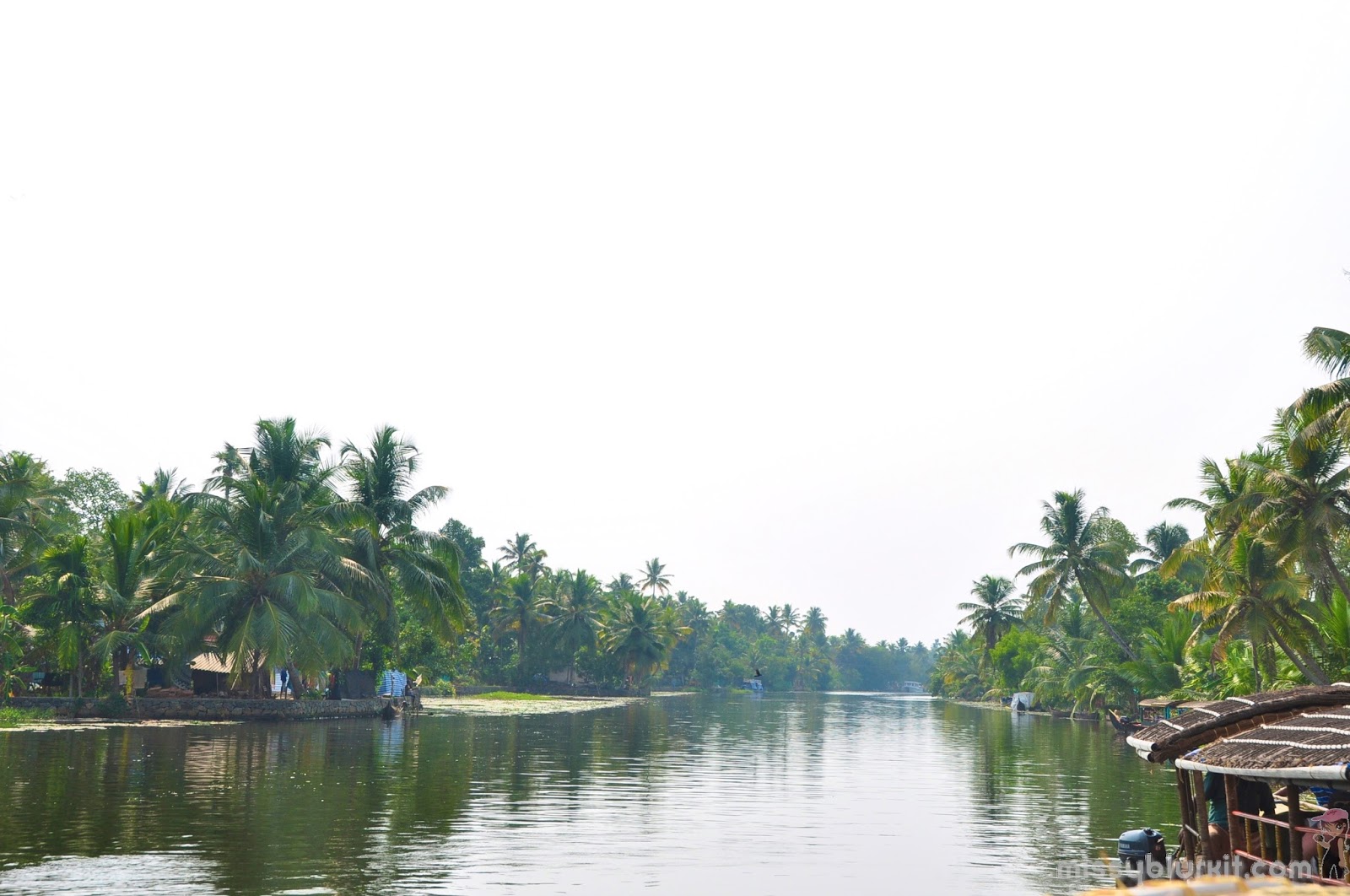 The river in Kumarakom with the many boat homes which are home per se and also home stay for tourism purposes.