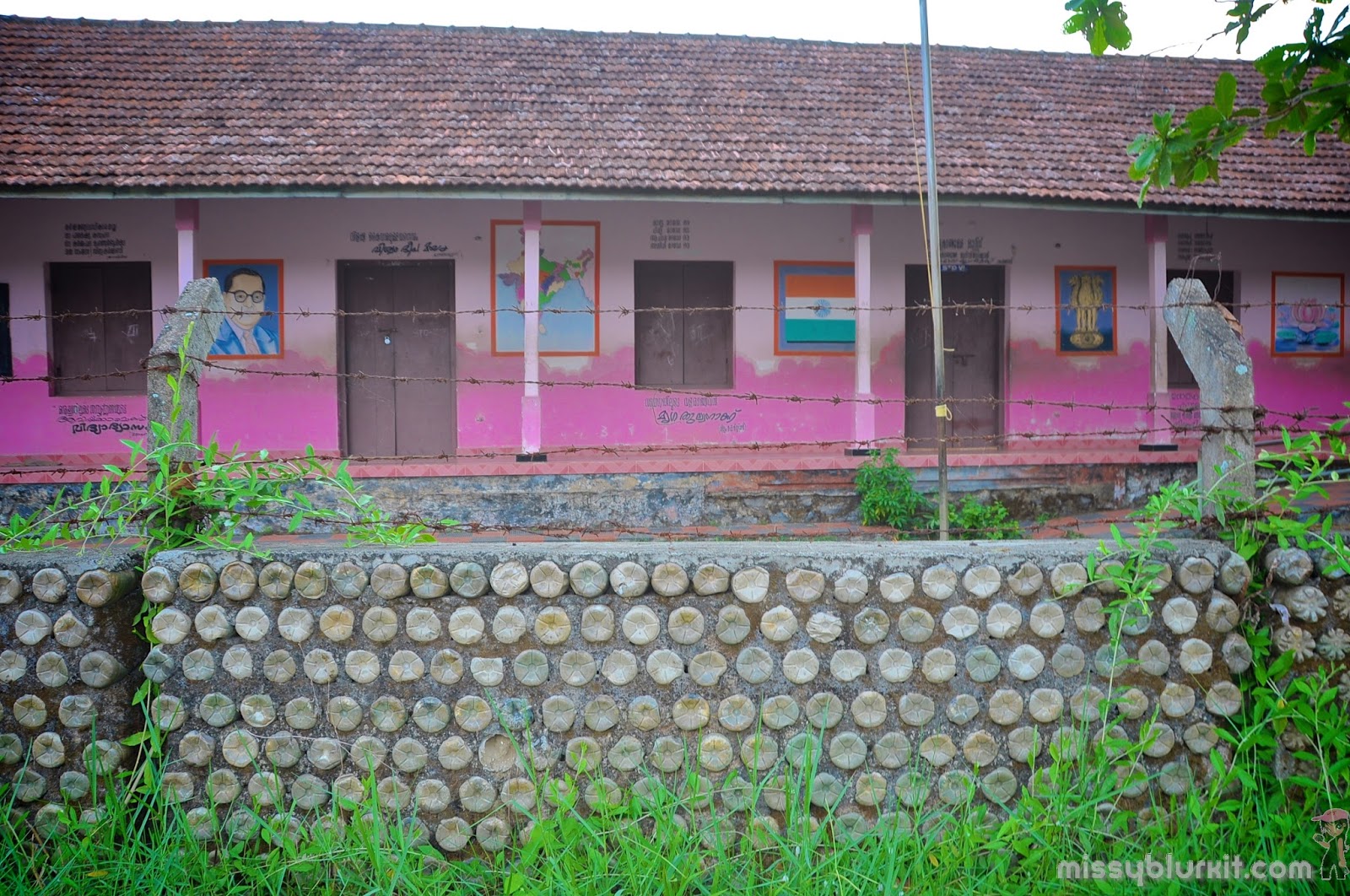 Today as we explore Kumarakom in the state of Kerala, India, ABM Government UP School caught our attention at the end of our visit the local villages by the river bank. Vibrant and colourful like how all schools should be, this one stood out because of its walls. Walls made of waste / plastic bottles.